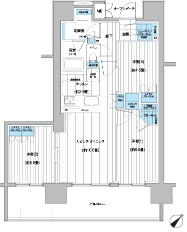 | 設備仕様 | ■カウンターキッチン■システムキッチン■食器洗乾燥機■シューズインクローゼット■ウォークインクローゼット■室内物干し■浴室乾燥機■温水洗浄便座■ランドリーハンガー■ワイドバルコニー■T-2等級サッシ■ノンタッチキー■24時間オンライン管理システム■オートロック■宅配ボックス■内廊下■ペット飼育可■インターネット定額制■ユニバーサルデザイン |